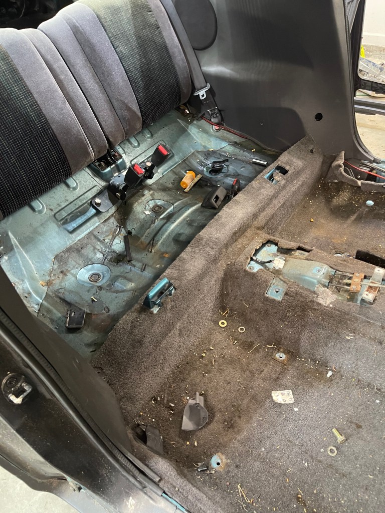 I’m starting this project by pulling the entire interior out of the car. The car had mold on the carpet and since my wife has had a run in with mold I wont take any chances of my project car sending any one back down that path. A car isn’t worth your health.