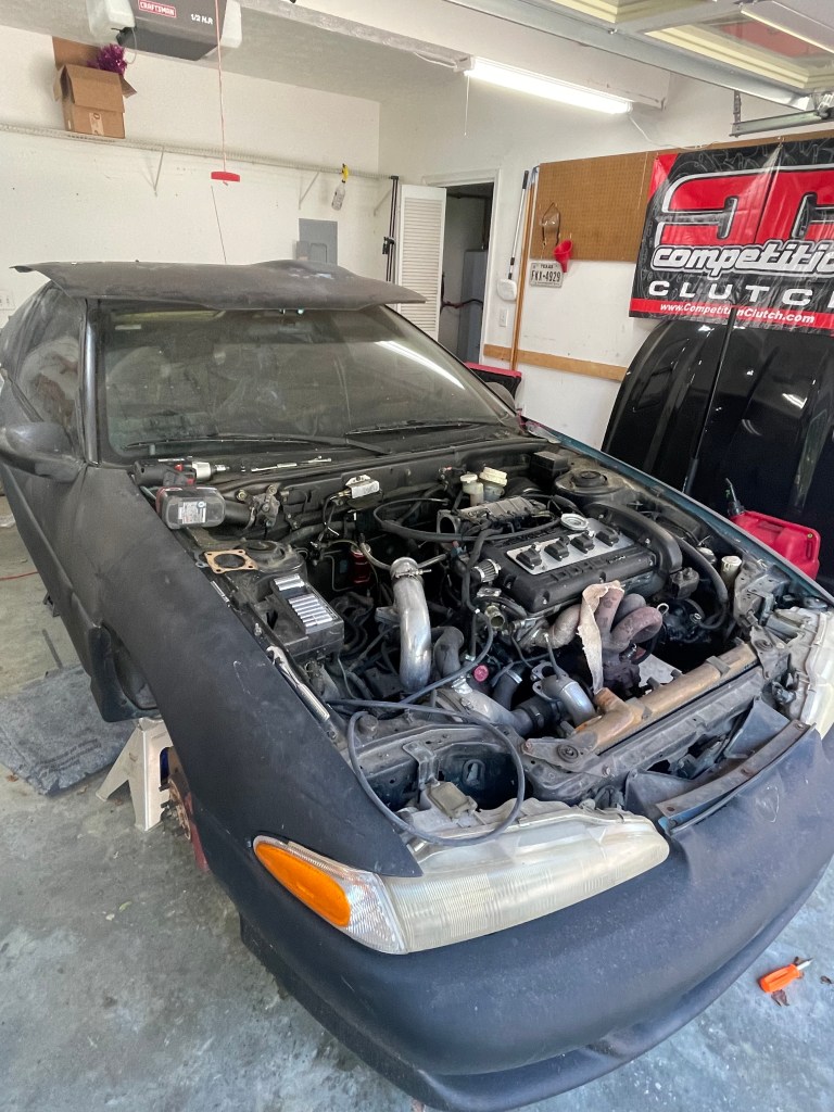 Today… was hot… for my fat ass at least, 84 degrees and upper lower 70’s for humidity. Today I began the engine bay tear down by pulling the hood off the car… not easy by yourself but i managed it without destroying anything.
