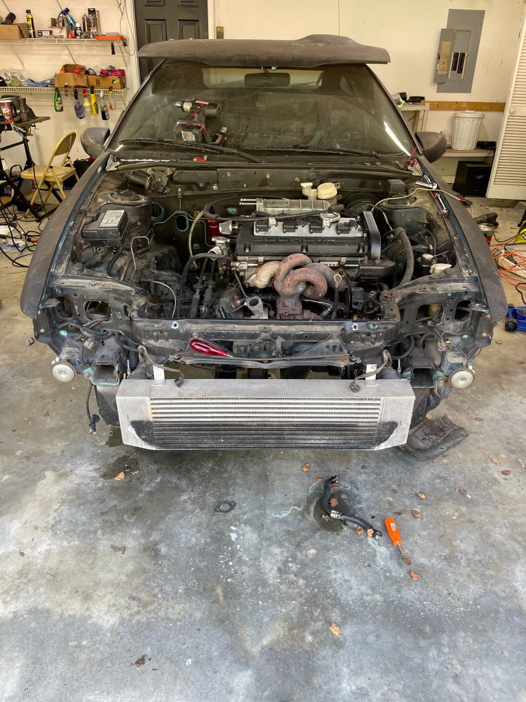 the whole goal today was to get the car all the way down to at least where nothing would be holding be back from pulling the motor out except for axles and motor mounts. Goal achieved. Hopefully tomorrow or next weekend i’ll get around to pulling those out and after that its time to start stripping down the rest of every thing to prep for engine bay shaving and paint.