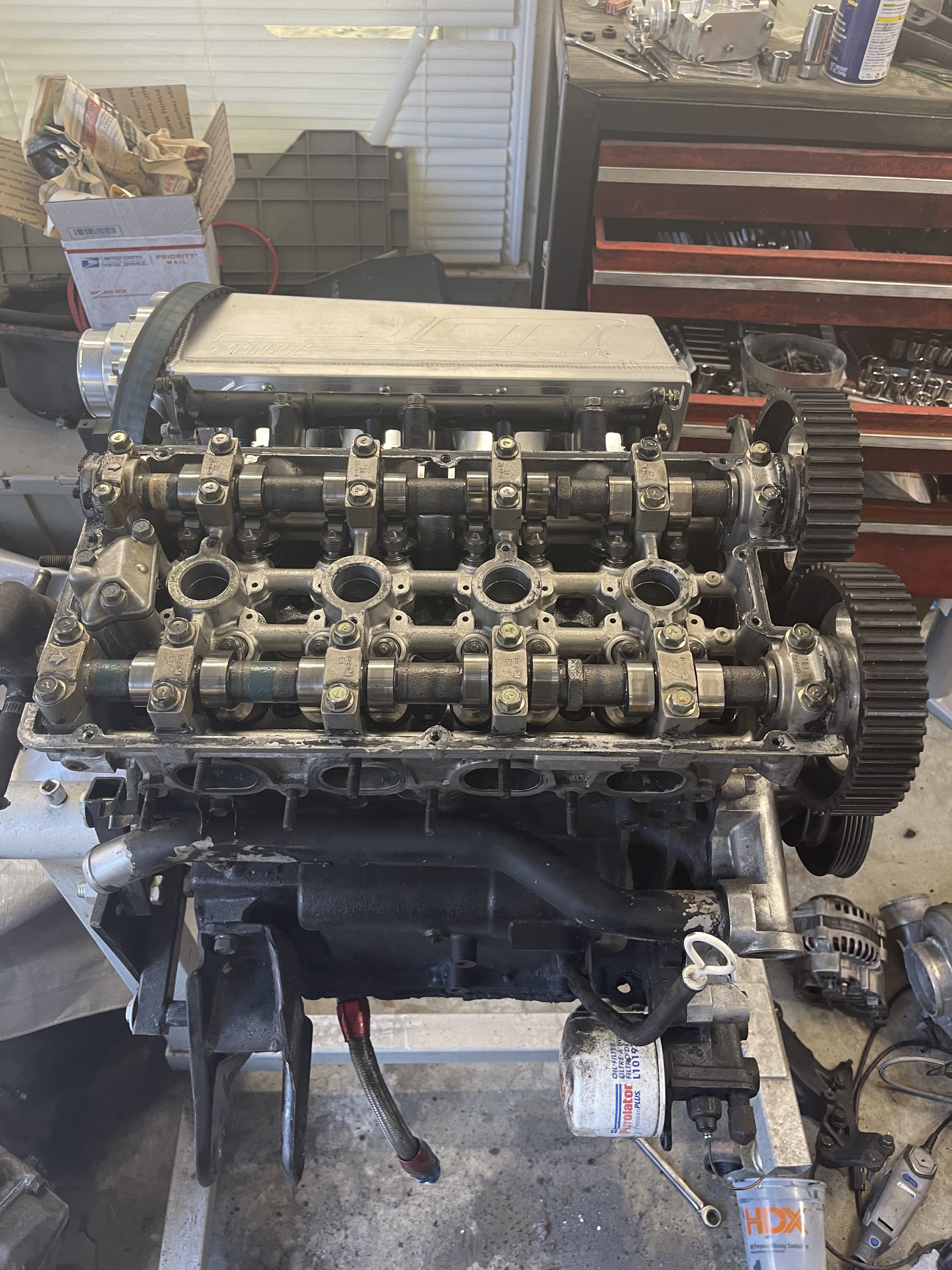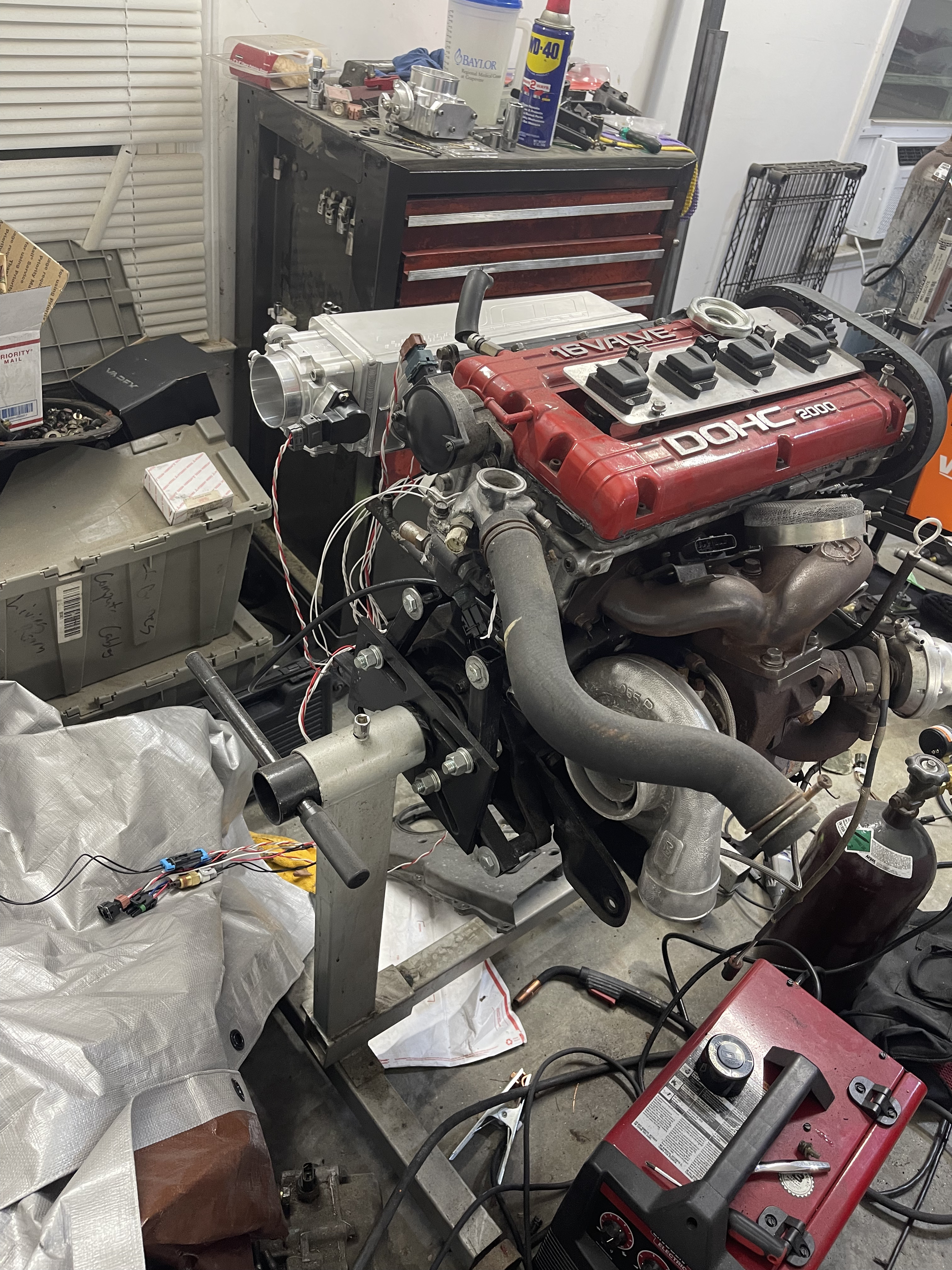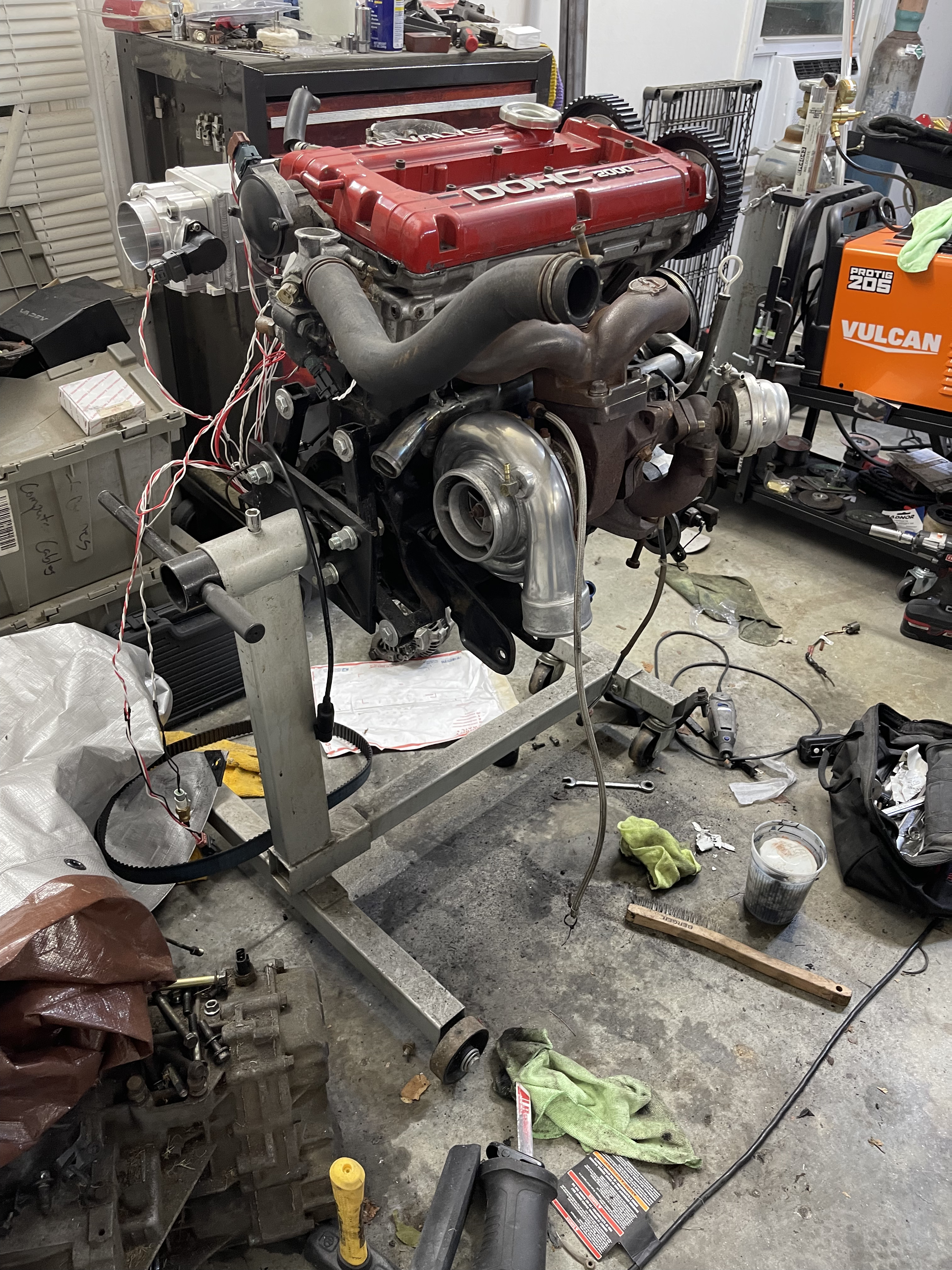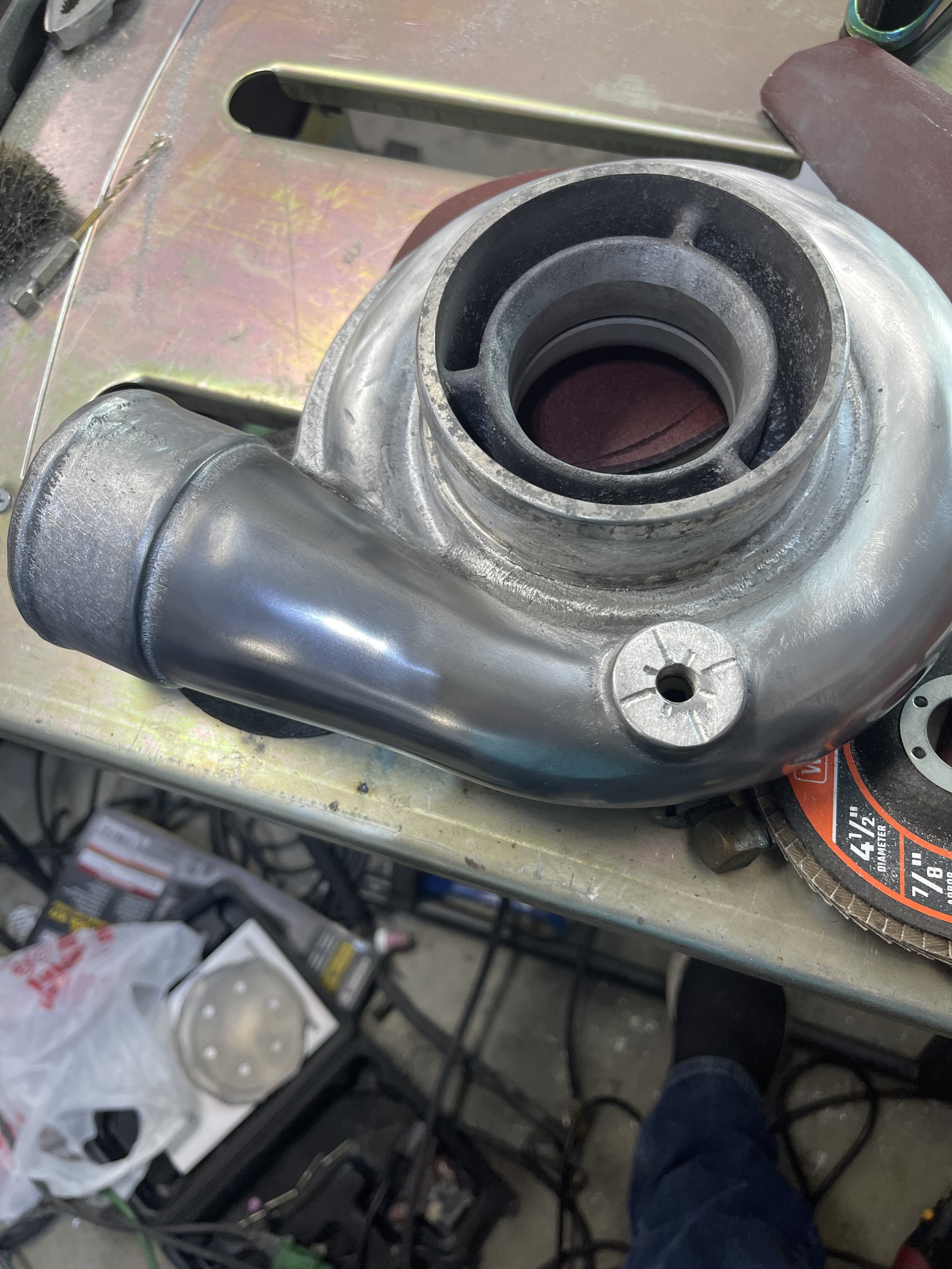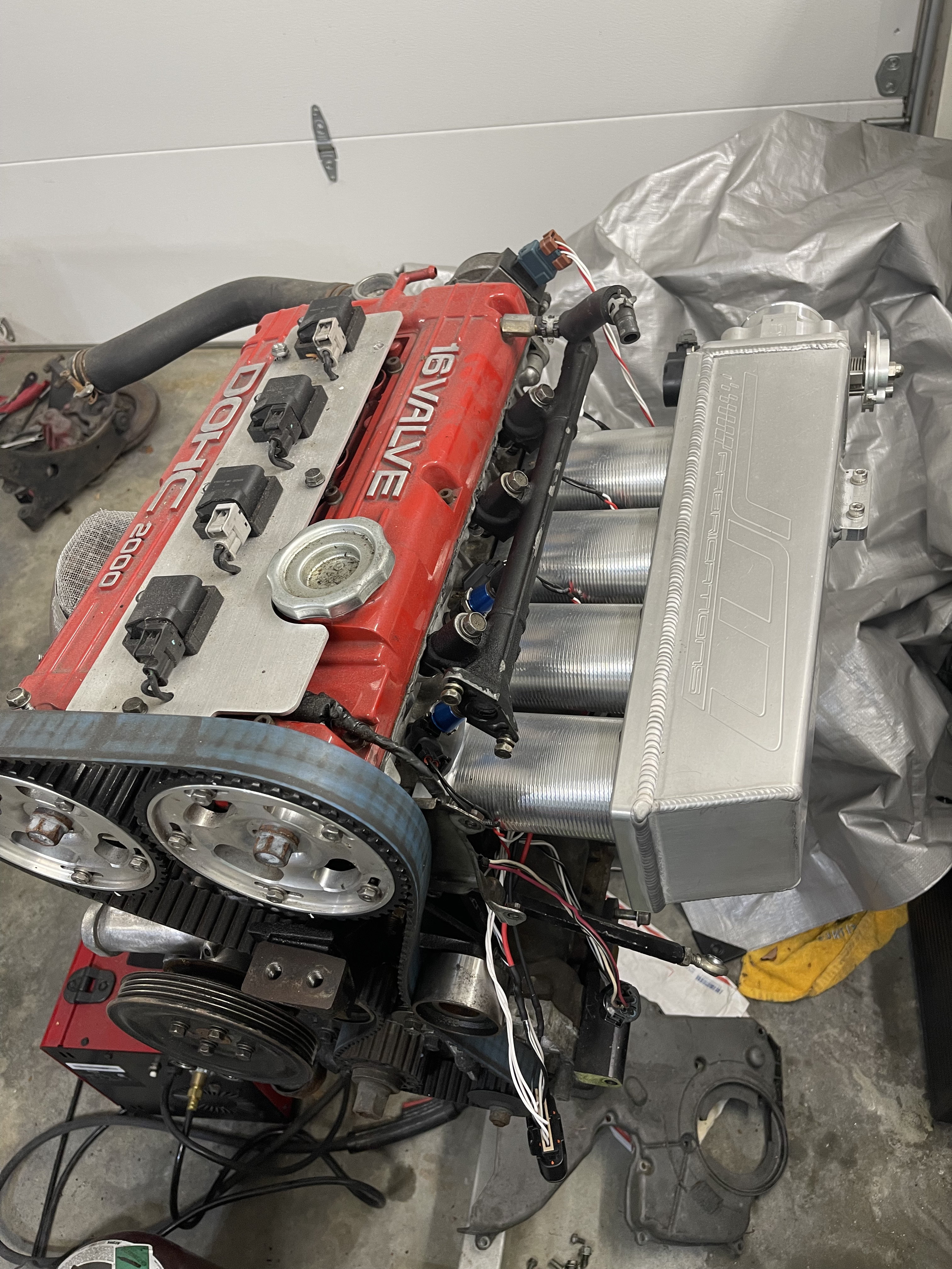 Since I’ve been back I’ve managed to finish up the wiring harness on the engine side, swap out some cams, weld up some water pipes and remove some jb weld that was sealing up a leak, polished a compressor housing and built a mounting tab to bolt to the motor for the power transistor, BCS and map sensor. Oh, timing belt and motor mount stuff came in so I’m hopefully putting the motor back in the bay this weekend.